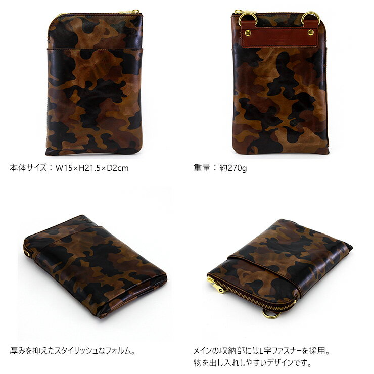 【送料無料】『アルティザン』(全1色)迷彩レザー/【ショルダーバッグ 薄マチ 斜め掛け 縦型 スリム ミニショルダー 2way ウエストバッグ シザーバッグ 革 本革 レザー 迷彩 カモフラージュ 日本製】【AGILITY affa(アジリティ アッファ)】(1208)
