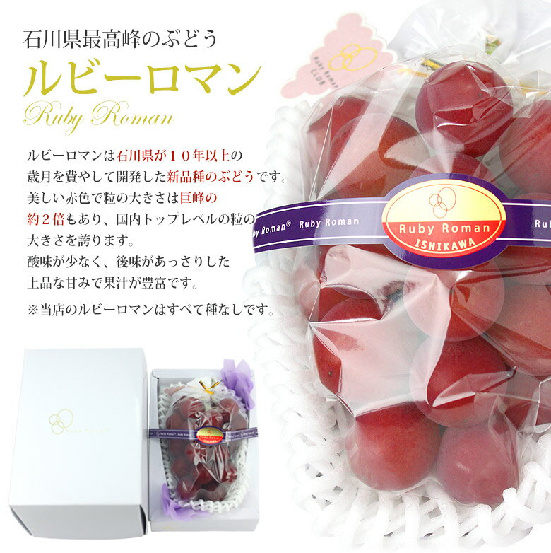 【送料込】ぶどうの宝石 ルビーロマン(600g〜690g) (石川産) プレゼント 手土産 誕生日 景品 くだもの 葡萄 ブドウ フルーツ 果物 内祝い お供え お悔やみ お悔み プレゼント ギフト 贈り物 お返し 敬老の日 お中元 お盆