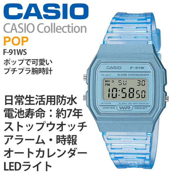 ネコポス配送品 カシオ デジタル ウォッチ スケルトン F-91WS-2JH 3,0 腕時計 CASIO メンズ 薄型 軽量21g 正規品 [チープカシオ プチプライス チプカシ プチプラ] サイズフリー 小学生 中学生 男性 女性 シンプル
