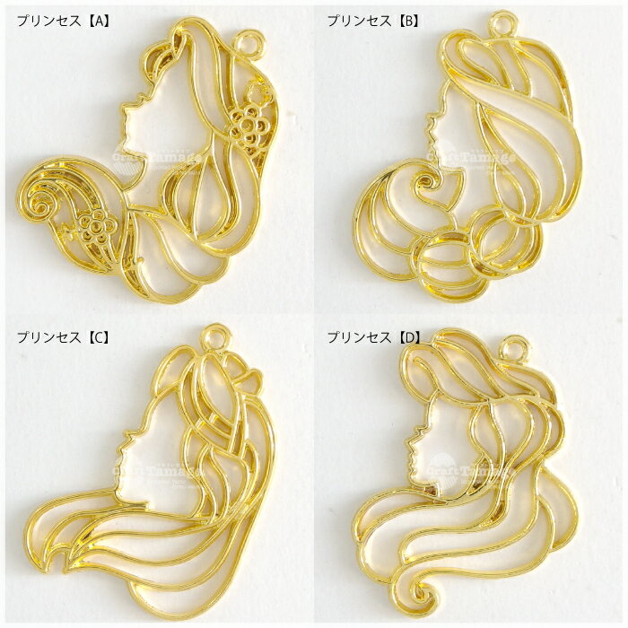 仕 様カラー:ゴールド材質:金属サイズ:プリンセス【A】約36*32*2.8mmプリンセス【B】約40*28*2.8mmプリンセス【C】約40*30*2.8mmプリンセス【D】約40*30*2.8mm(縦*横*厚)※カン含まず入 数10個注意事項●海外生産の為、輸入、生産時に、擦り傷・バリ・歪み・メッキムラ等ある場合がございます。