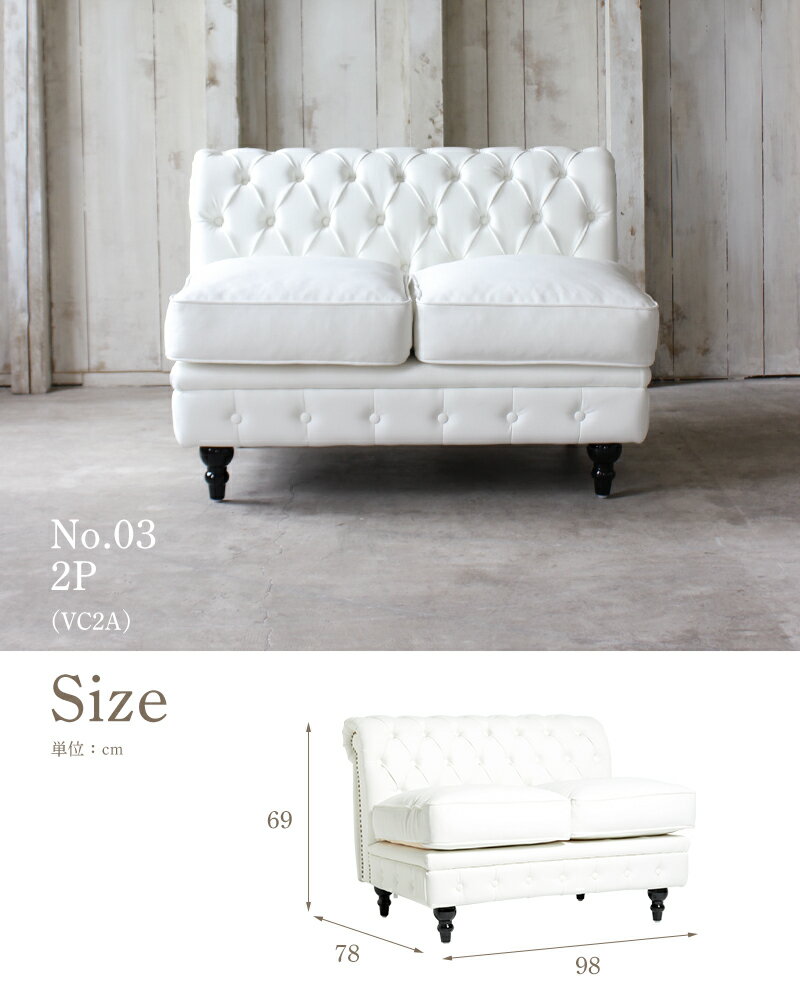 ヴィンセント チェスターフィールド アンティーク レトロ ソファ 組み合わせソファ ソファー 2人掛け 2人掛けソファ アンティーク調 コンパクトソファ モジュール式 ソファパーツ フリースタイル 合皮 布地 イギリス 英国調 受注生産 VC2A / No.03
