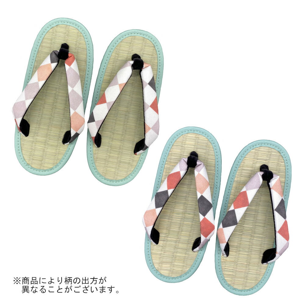 【素材】 鼻緒表面:綿 鼻緒裏面:(基布)レーヨン、(フロッキー)ナイロン 鼻緒芯(紐):ポリプロピレン、ナイロン、ポリエステル 中底(上部):天然い草 底材:ゴム底 パイピング部:PVC 【生産国】日本製 ■注意事項 ※水洗いできません。