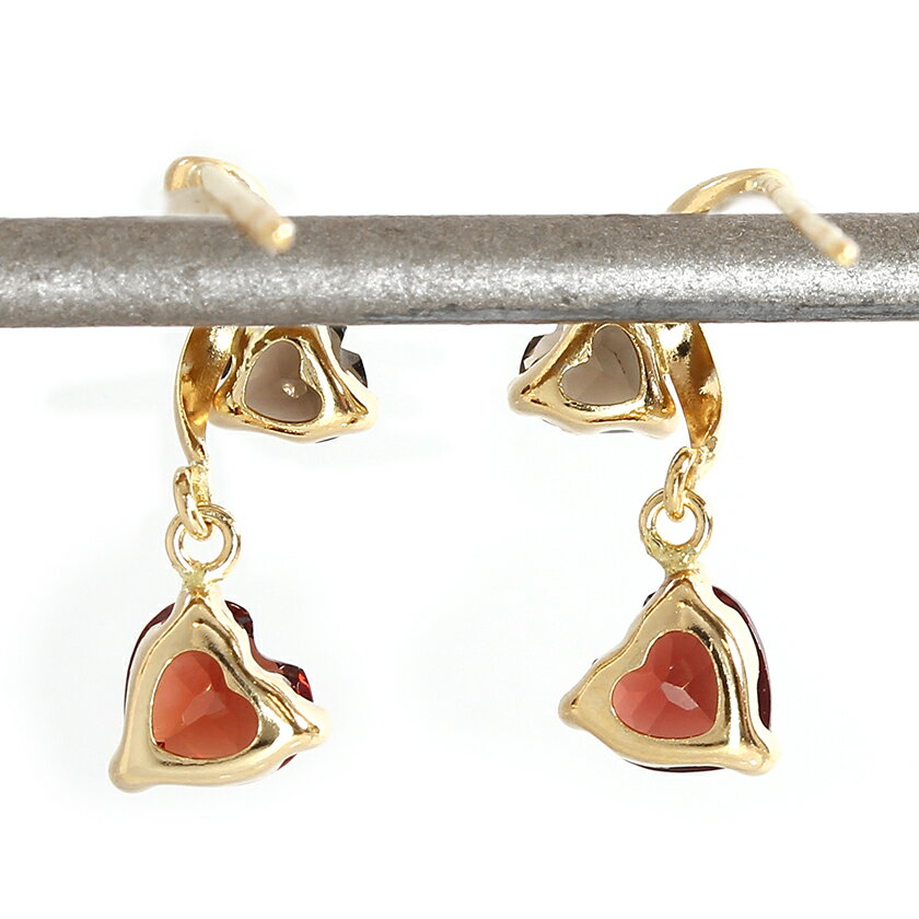【あす楽対応】セカンドピアス 18K レディース ガーネット スモーキークオーツ・ティアマット K18 18金 軸太0.8mm 長さ12mm ポストが太い 安心 ノンアレルギー対応 福耳 モチーフ 揺れる 可愛いピアス ジュエリー 誕生日プレゼント 女性 人気 おすすめ ブランド 宝石 天然石