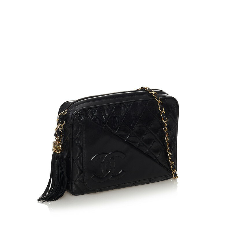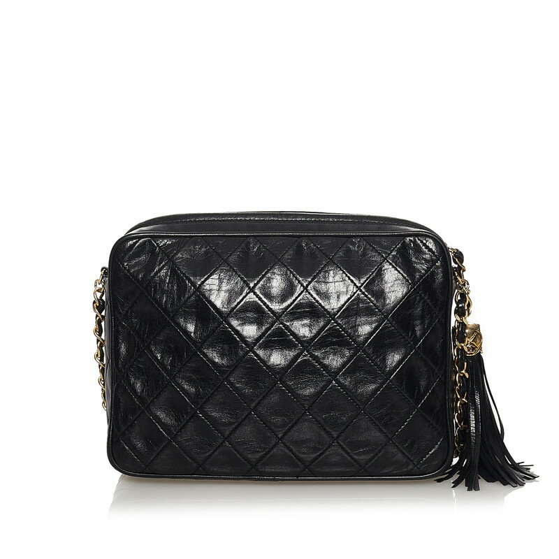シャネル マトラッセ ココマーク フリンジ チェーン ショルダーバッグ ブラック ラムスキン レディース CHANEL 【中古】