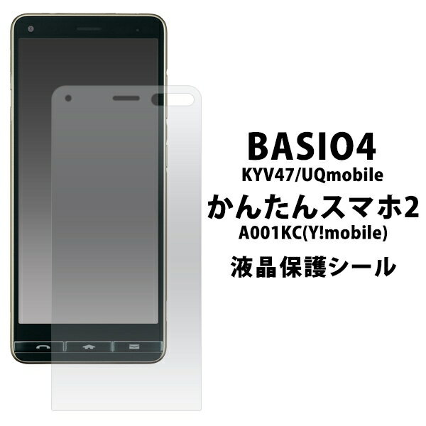 メール便送料無料【 BASIO4 KYV47/UQmobile /かんたんスマホ2 A001KC(Y!mobile) 液晶保護シール 】 ベイシオ フォー 京セラ 2020年2月発売モデル 保護フィルム 保護シート シンプル ノーマル 光沢 自己吸着 貼り直し可能 傷防止 液晶保護 画面保護 スクリーンガード