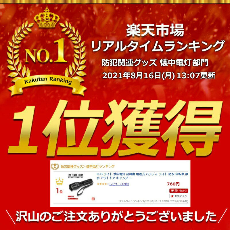 LED ライト 懐中電灯 高輝度 電池式 ハンディ ライト 防水 自転車 散歩 アウトドア キャンプ 夜釣り 明かり ズーム フラッシュ 小型 最強 強力 光 防塵
