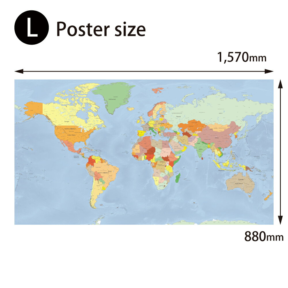 世界地図 ポスター 【スタンダード】 L [ ラミネート加工 ] 大型 ( 1,570 × 880 mm ) 英語版 world map アートパネル インテリア おしゃれ ミニマルマップ 送料無料