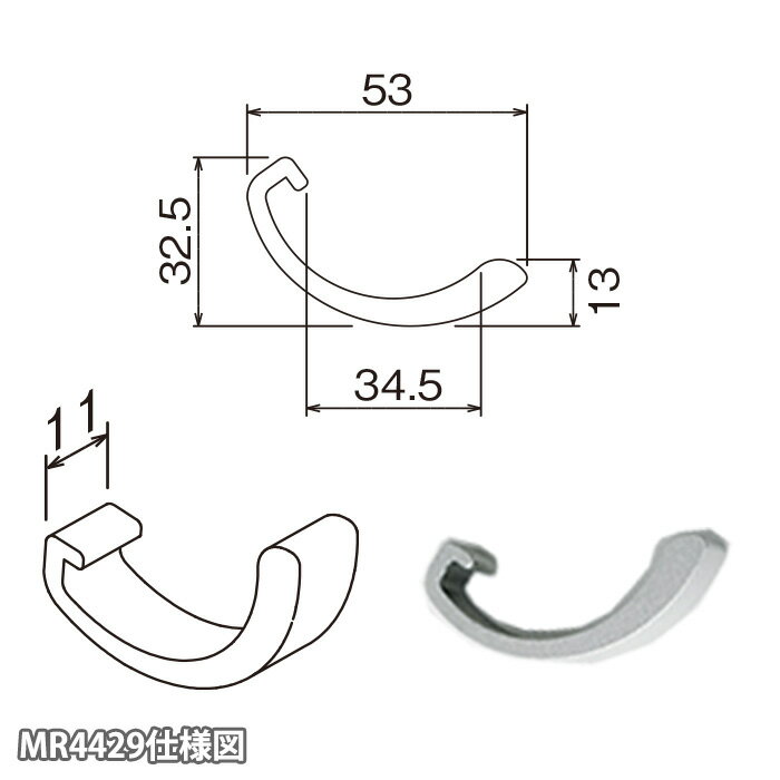 商品仕様 サイズ幅11X高さ3.3X奥行5.3cm 材質<本体>:アルミ 入数1袋1ヶ入り 安全荷重3kg メーカー希望小売価格はメーカーカタログに基づいて掲載しています