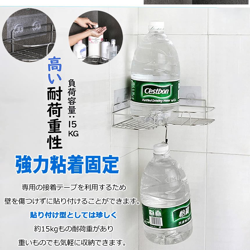 浴室ラック ステンレス お風呂 ラック シャンプーラック コーナー 強力粘着テープ固定 浴室 台所 収納 インテリア tec-shamrack