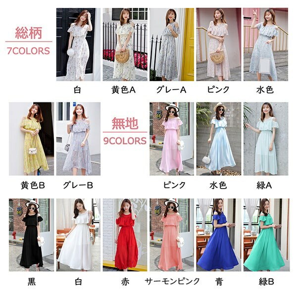 セット内容 ✽.*꙳ ワンピース「記載のないアクセサリー 小物等は付属しません」 素材 ✽.*꙳ シフォン/ポリエステル カラー ✽.*꙳ 水色(無地)/白(無地)/黒(無地)/ピンク(無地)/サーモンピンク(無地)/青(無地)/赤(無地)/緑A(無地)/緑B(無地)/白(総柄)/黄色A(総柄)/グレーA(総柄)/ピンク(総柄)/水色(総柄)/黄色B(総柄)/グレーB(総柄) サイズ (cm) ✽.*꙳ S/バスト80 肩幅36 袖丈13 着丈115M/バスト84 肩幅37 袖丈13 着丈115L/バスト88 肩幅38 袖丈14 着丈1152L(XL)/バスト92 肩幅39 袖丈14 着丈1153L(2XL)/バスト96 肩幅40 袖丈14 着丈115※表記寸法と実寸値の多少の誤差はご容赦ください。