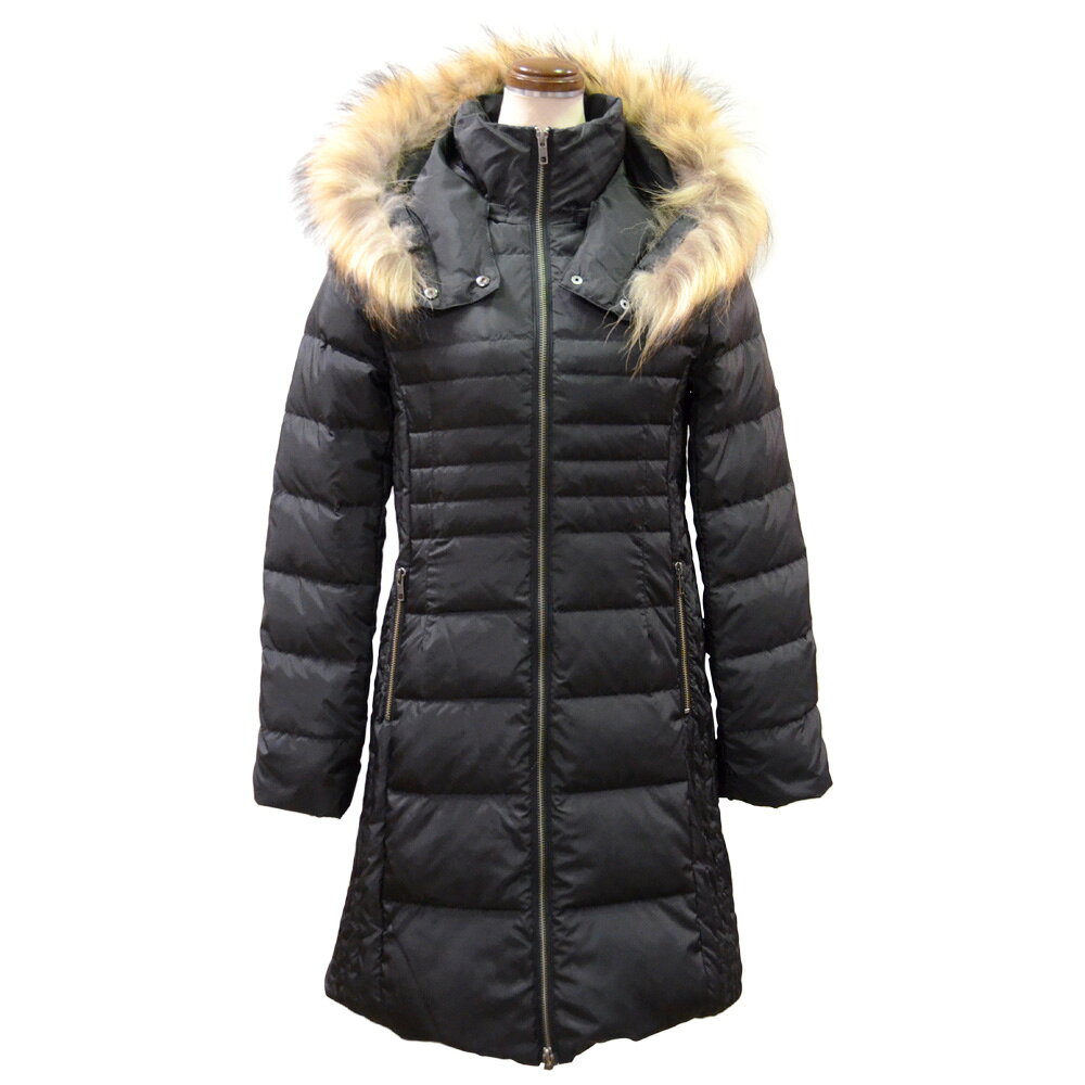 ラクーンファー使い暖かロングダウンコート(ブラック)(( コート レディース 冬 ゆったりサイズ カジュアル きれいめ ロング ダウン アウター ロング丈 ダウン80% aライン スタンドカラー 軽い 黒 )