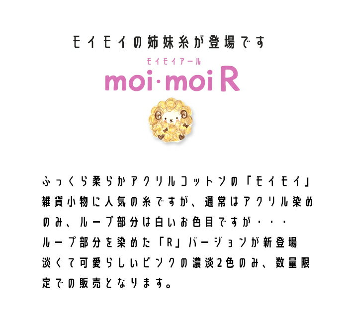 商品カテゴリ:毛糸 編み物 アクリル 綿 コットン ナイロン 【ホワイト】 【生成り】【ピンク】moi・moi モイモイ 極太 30g玉巻 国産 ファンシーヤーン こちらのページは、< Moi・moi R(モイ・モイ アール) >です! moi・moiRでスタッフがミニバッグを編んでみました ▼作品ページは画像をクリック▼ こちらは姉妹糸"モイ・モイ"を使用した作品です ▼編み図は画像をクリック▼ col.02を3玉(90g)col.03を1玉(25g)使用しています 作品詳細は画像をクリック ▼姉妹糸 モイ・モイ商品ページはこちら▼ 撮影時の環境・モニター設定等により、実物と多少色が異なって 見える場合がございます。