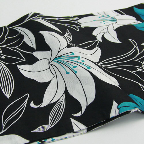 黒地に緑・白の百合が描かれた浴衣は上品な可愛らしさでしっとりした大人の女性にオススメのデザインです。