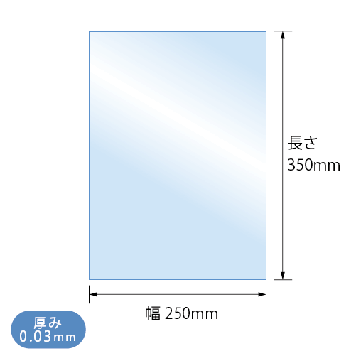 材質:OPP・サイズ:厚さ0.03mmx幅250mmx長さ350mm、入数:1000枚(100枚入x10袋)。