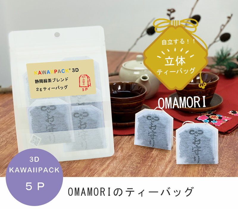 プレゼントやプチギフトにもおすすめです! kawaiipack 3DOMAMORI 5個入 910円 自立する!立体ティーバッグ。